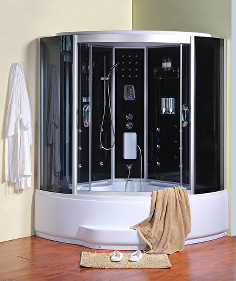 Annara halfronde stoomcabine zwart met massagebad 150x150x220 cm