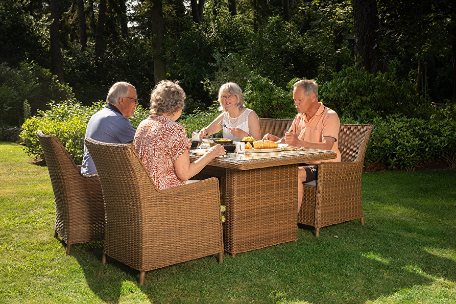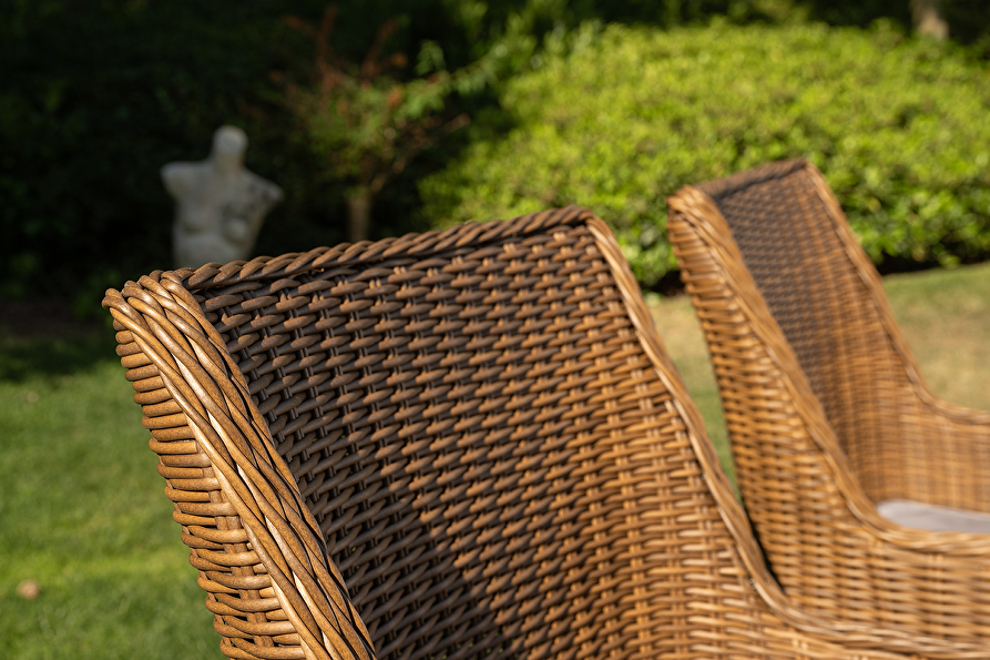 Ontspan in stijl met ons Artigiano diningset. Luxe en hoge kwaliteit. Gepoedercoat aluminium frame voor een langere levensduur. Weerbestendig vlechtwerk en waterafstotende kussens. Perfect voor buiten.