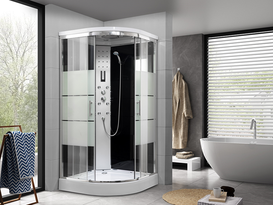 De EasyShower Complete Douchecabine Halfrond met Massagebad is pure weelde in je badkamer. Geniet van een ontspannende rugmassage dankzij de 6 waterjets. Met zijn regen- en handdouche, bedieningspaneel en sfeervolle LED-verlichting biedt deze douchecabine een luxe ervaring. Gemaakt van PVC veiligheidsglas en RVS, staat de EasyShower garant voor kwaliteit en duurzaamheid. Ontdek nu de perfecte combinatie van comfort en stijl.