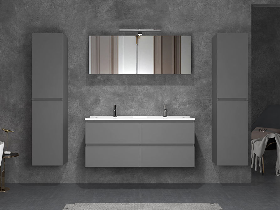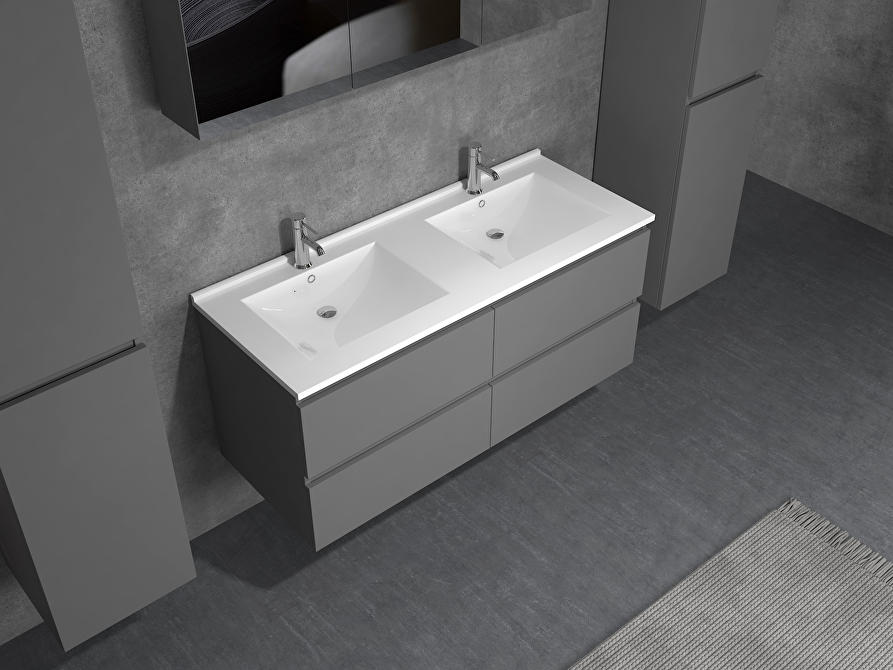 • Model: 2-persoons badkamermeubel 120 cm  - hoogglans antraciet met witte wasbak