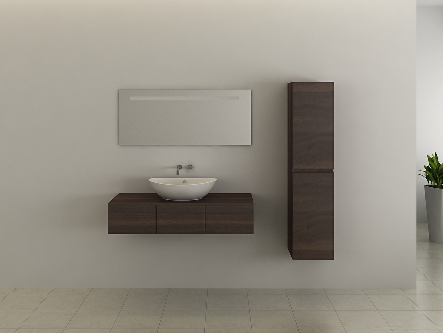 • Model: 1-persoons badkamermeubel 120 cm - donker hout decor met zijkast en witte waskom