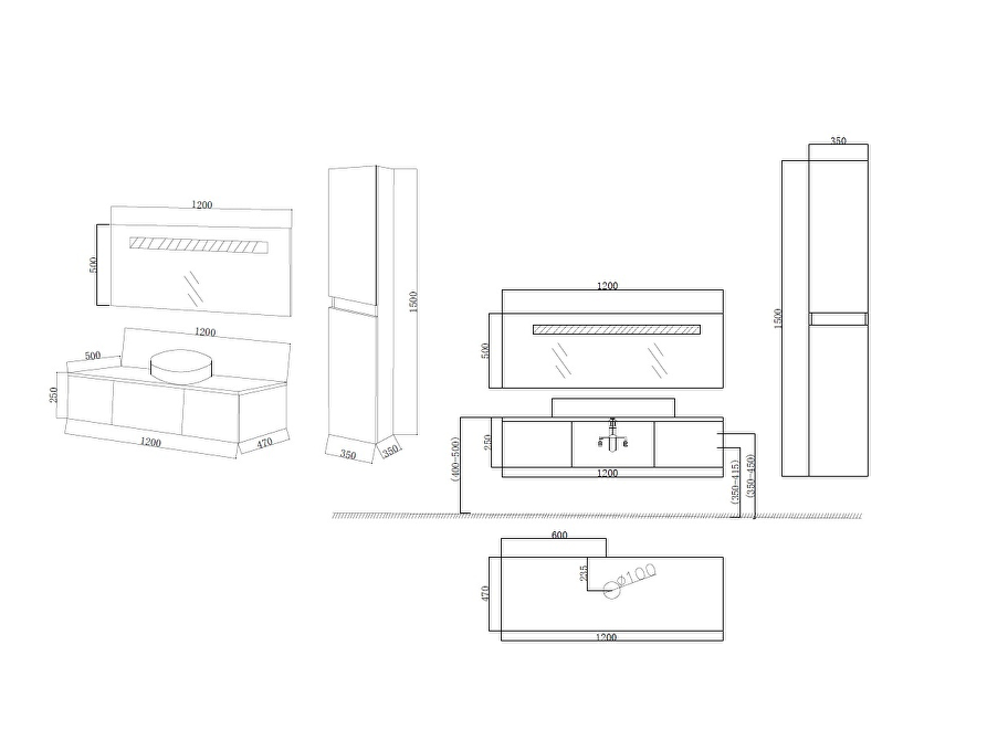 • 1 * Wastafelmeubel - 1800x470x250mm -