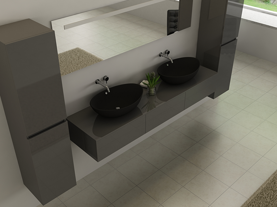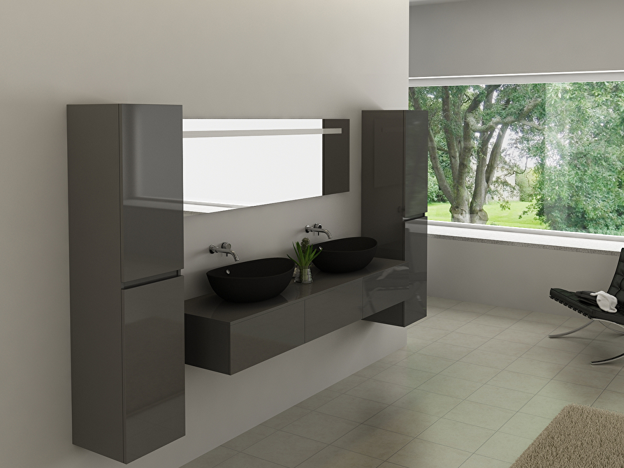 • Model: 2-persoons badkamermeubel 180 cm - hoogglans antraciet met zijkasten en zwarte waskommen