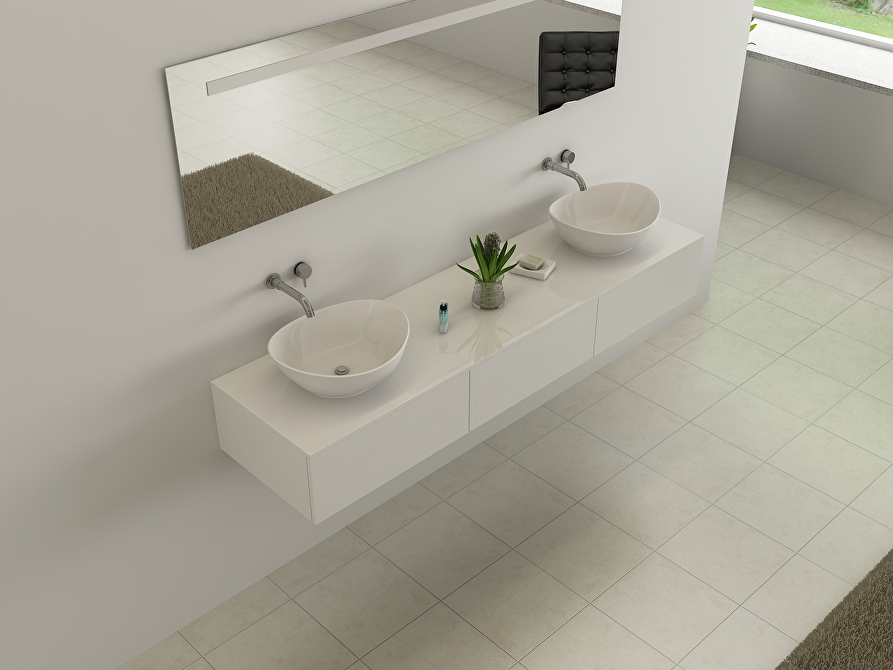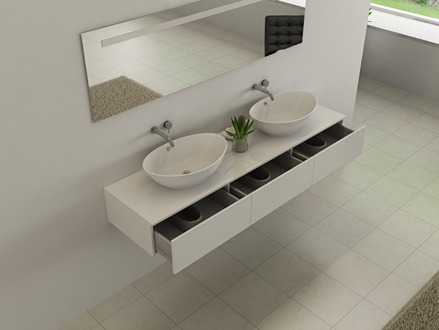 • Model: 2-persoons badkamermeubel 180 cm - hoogglans wit met witte waskommen