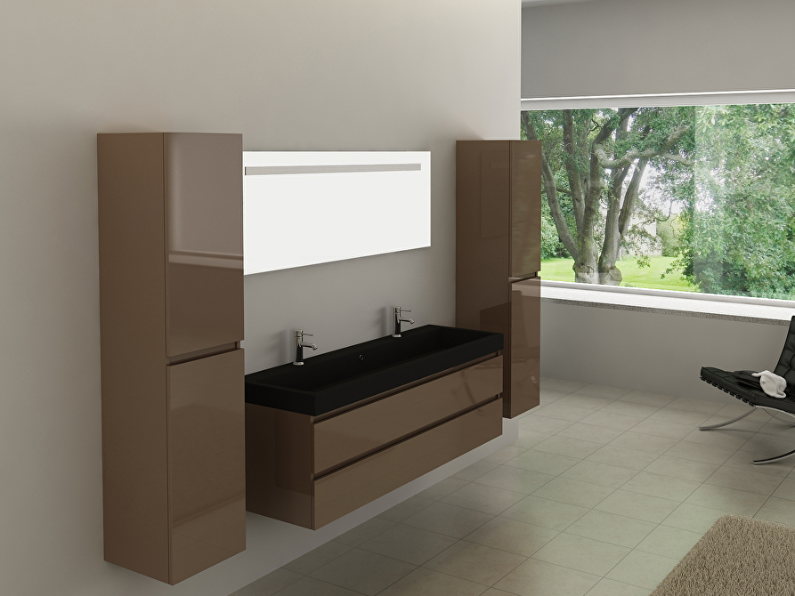 • Model: 2-persoons badkamermeubel 150 cm - taupe met zwarte wasbak