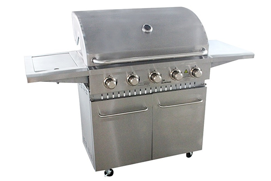 • Voorzien van: 5 Hoofdbranders en 1 zijbrander - Stalen roosters met warmhoudrek en leklade - elektrische ontsteking - Deksel voorzien van thermometer - Verrijdbaar.