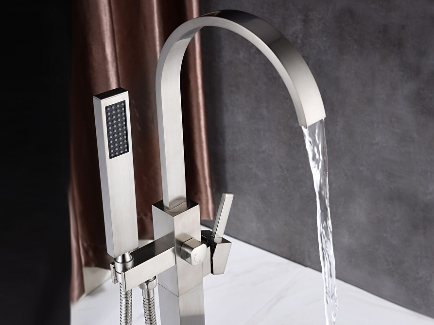 Ontdek de Jalm & Hamo vrijstaande badkraan zilver (mat) van topkwaliteit. Luxueus design, 360 graden draaibare uitloop en uitneembare handdouche. Hoogwaardige materialen, perfect voor een ontspannen badervaring. Transformeer uw badkamer met deze eyecatcher.