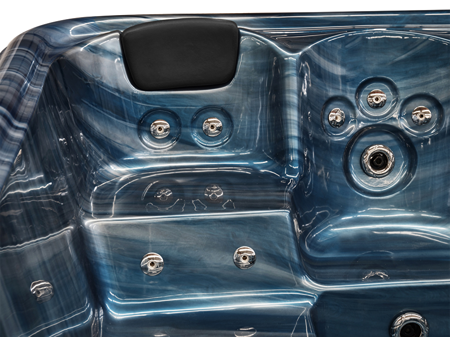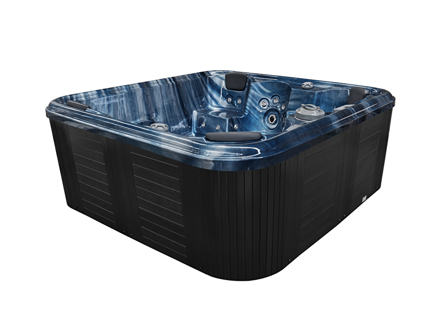 Het frisse ontwerp met een blauw bad en zwarte zijkant geeft deze spa een moderne en stijlvolle uitstraling die prachtig opgaat in elke buitenomgeving. De combinatie van diepe massagestralen, slimme technologie en sfeervolle LED-verlichting maakt van elke sessie een complete wellnessbeleving.