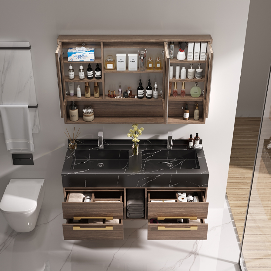 Laat je betoveren door de luxueuze uitstraling van onze Badkamermeubelset Marvera 120 cm. Dit hoogwaardige 2-persoons badkamermeubel in donkerhout decor met marmeren wasbak geeft je badkamer een luxe uitstraling. Compleet met softclose lade systeem, opzetkranen, touchscreen LED-verlichting en meer. Creëer de perfecte badkamerervaring met deze prachtige set.
