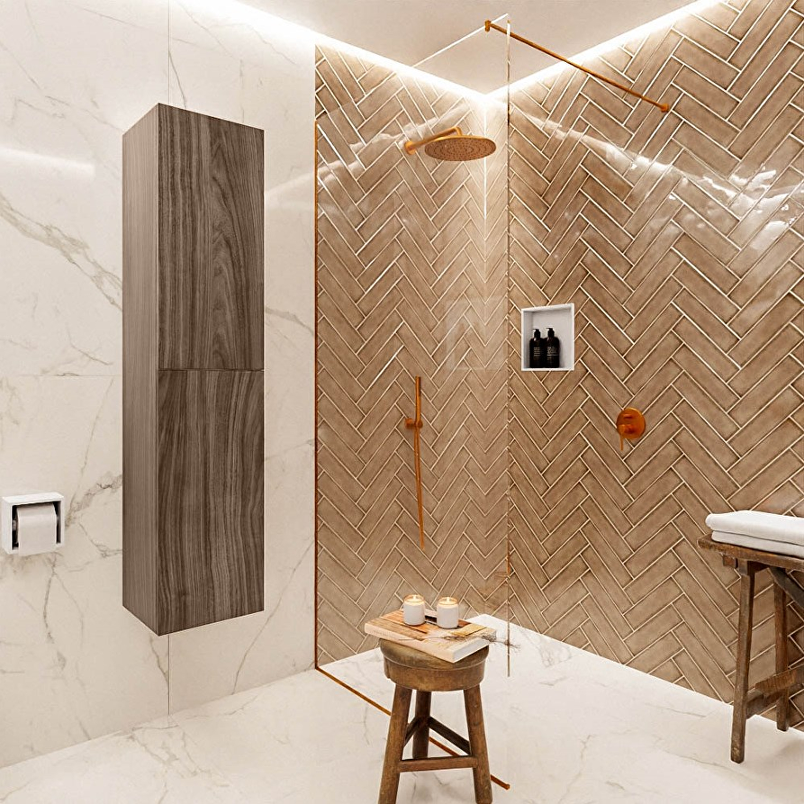 - Plaats het meubel niet direct naast of tegenover een douche zonder douchewand of met alleen een douchegordijn.