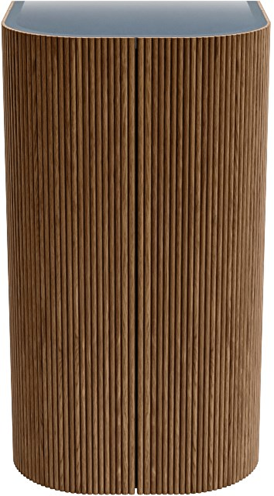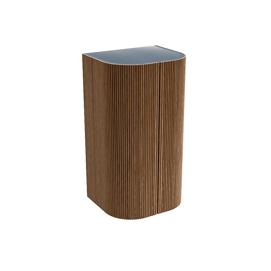 De KURVE kolomkast, verkrijgbaar in de afmeting 160x45cm of 80x45cm, is meer dan alleen een functioneel meubelstuk voor je badkamer. Met zijn keuze aan warme kleuren, Walnut, Oak, Shadow, Dusk & Ruby en zijn kenmerkende halfronde, verticale stroken van massief eiken, voegt de KURVE een vleugje verfijning en luxe toe aan de ruimte.