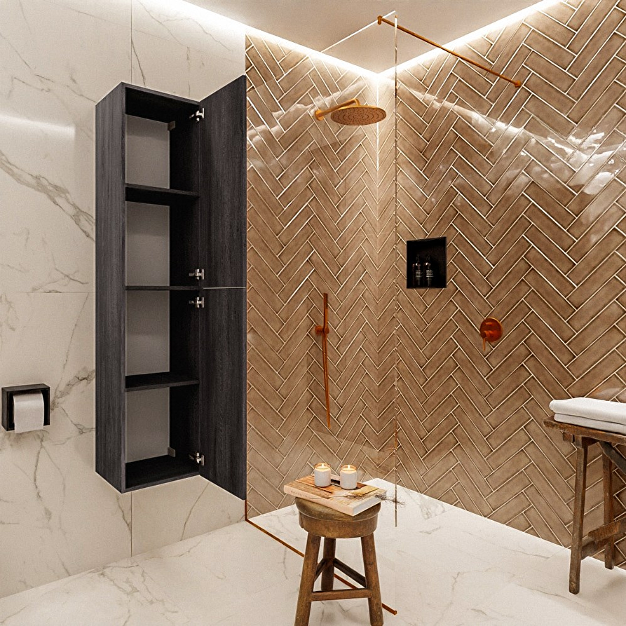 De BEAM 160cm badkamerkast met 2 push-to-open deuren is een veelzijdige toevoeging aan elke badkamer. Deze kolomkast biedt flexibiliteit, omdat je kunt kiezen of je de deuren aan de linker- of rechterkant wilt plaatsen. Met de extra opbergruimte van de BEAM badkamerkast ligt niets meer in de weg. Alles is netjes opgeborgen, zodat je kunt genieten van de rust en wellness van jouw badkamer.