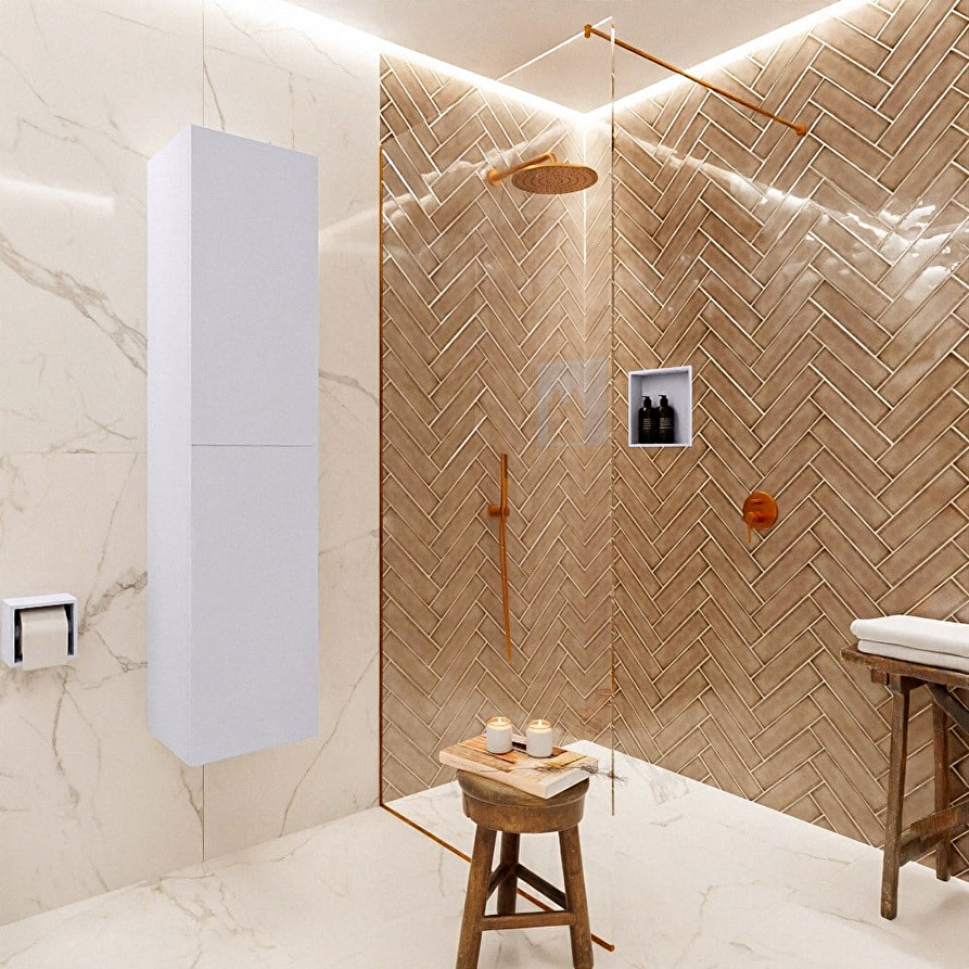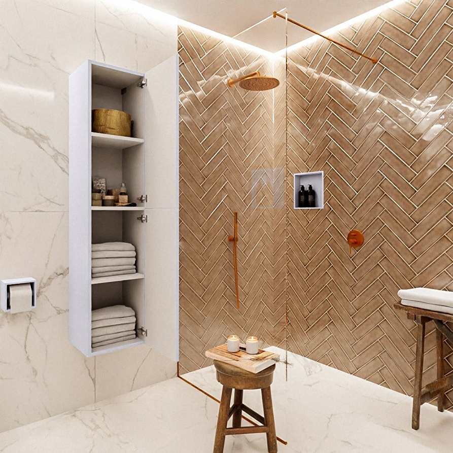 De BEAM 160cm badkamerkast met 2 push-to-open deuren is een veelzijdige toevoeging aan elke badkamer. Deze kolomkast biedt flexibiliteit, want je kunt kiezen of je de deuren aan de linker- of rechterkant wilt plaatsen. Met de extra opbergruimte van de BEAM badkamerkast blijft alles netjes opgeborgen, waardoor je kunt genieten van de rust en wellness in jouw badkamer.