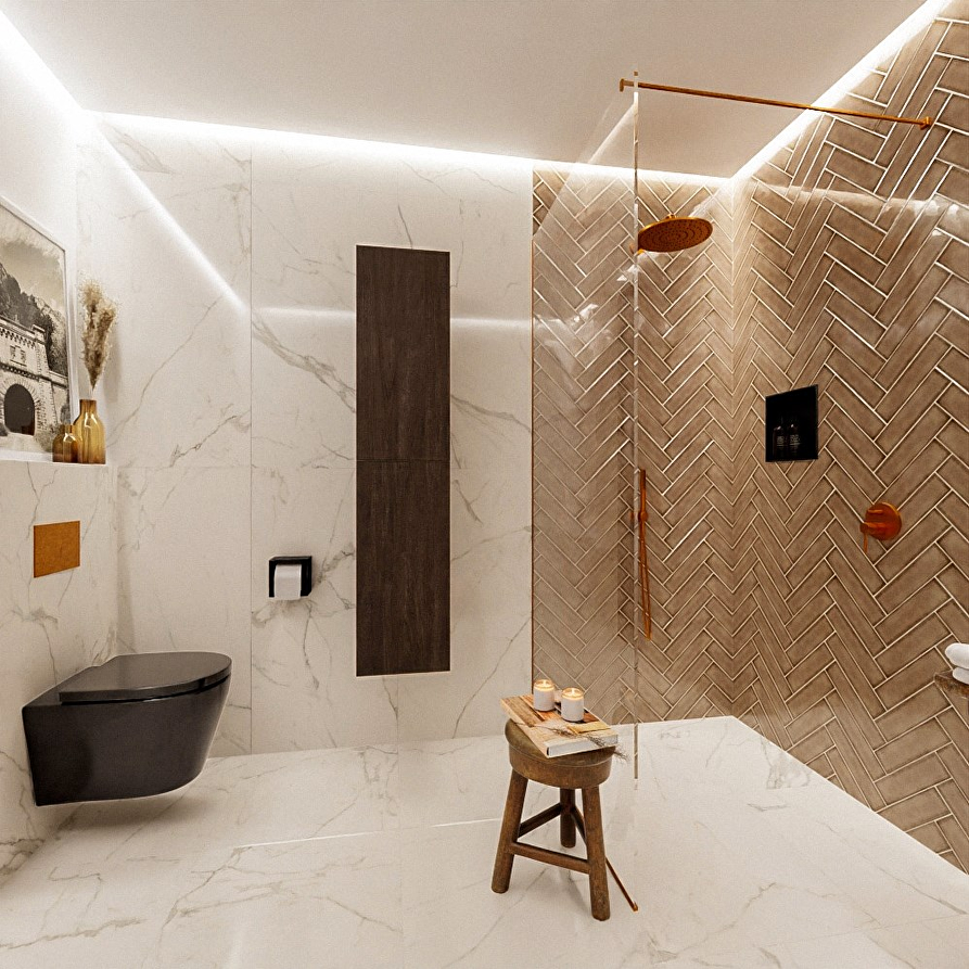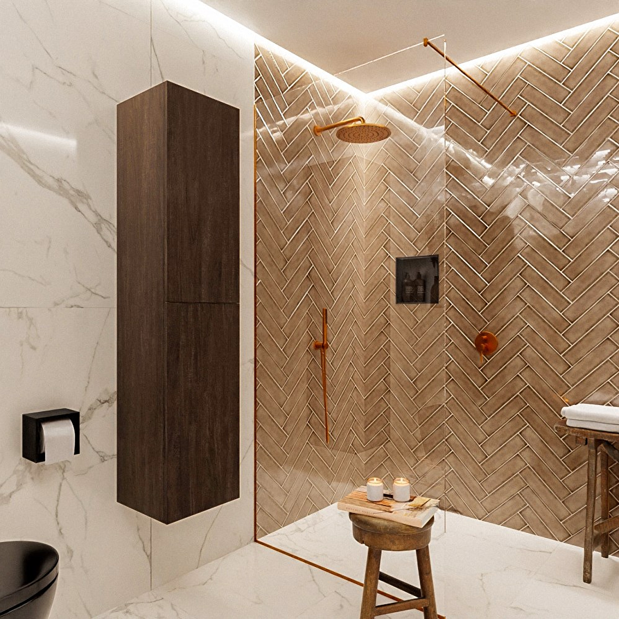 - Plaats het meubel niet direct naast of tegenover een douche zonder douchewand of enkel met een douchegordijn.