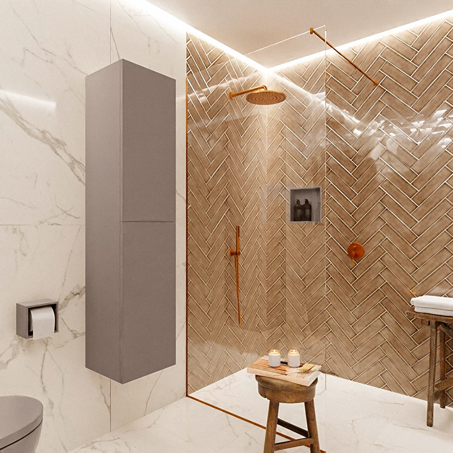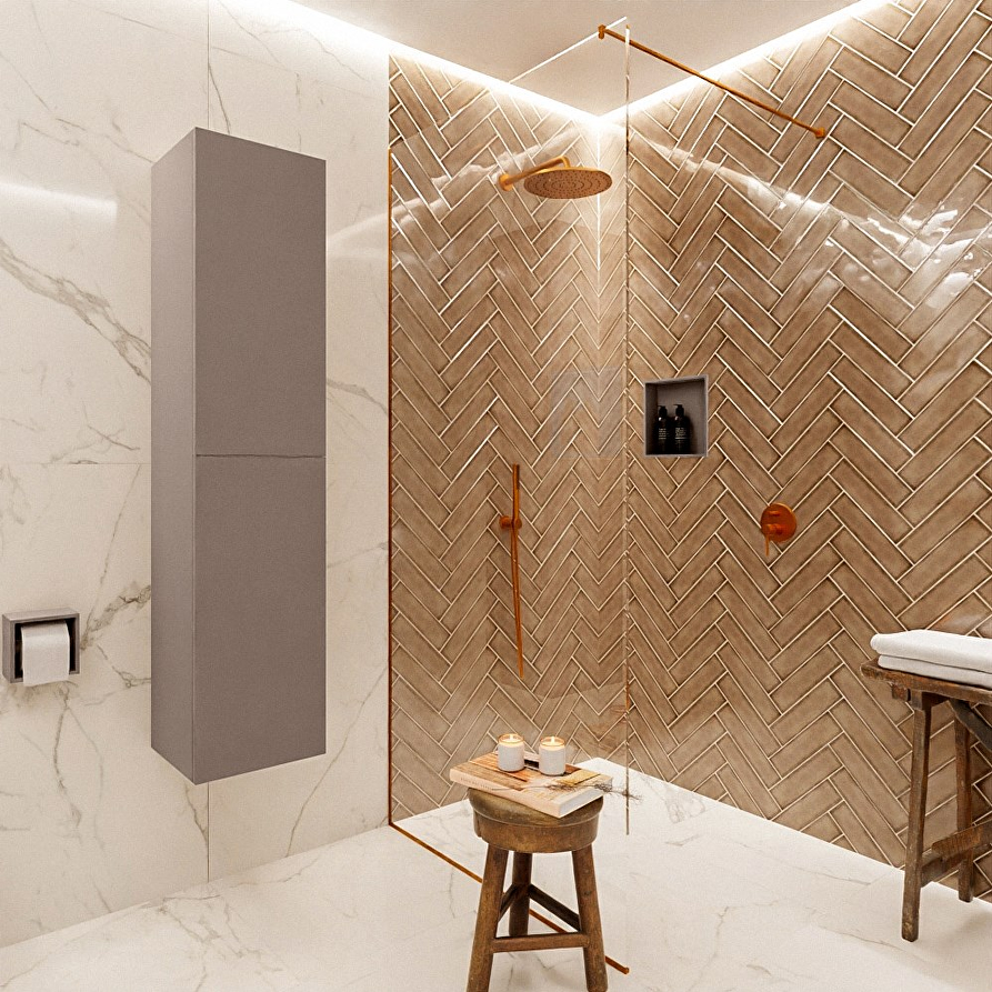 De BEAM 160 cm badkamerkast met twee push-to-open deuren is een veelzijdige toevoeging voor elke badkamer. Deze kolomkast biedt flexibiliteit, omdat je kunt kiezen of je de deuren aan de linker- of rechterkant wilt plaatsen. Met de extra opbergruimte van de BEAM badkamerkast blijft alles netjes opgeborgen, zodat je kunt genieten van de rust en wellness in jouw badkamer.