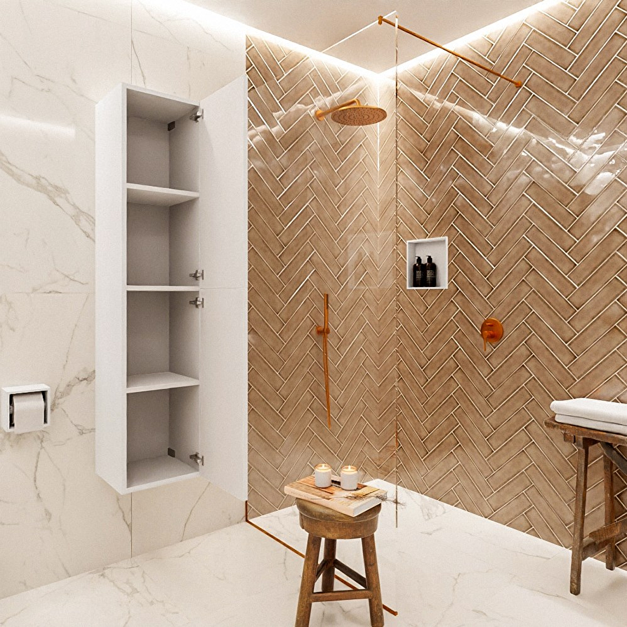 De BEAM 160 cm badkamerkast met twee push-to-open deuren is een veelzijdige toevoeging aan elke badkamer. Deze kolomkast biedt flexibiliteit, omdat je kunt kiezen of je de deuren aan de linker- of rechterkant wilt plaatsen. Met de extra opbergruimte van de BEAM badkamerkast hoeft niets meer in de weg te liggen. Alles is netjes opgeborgen, zodat je kunt genieten van de rust en wellness van jouw badkamer.