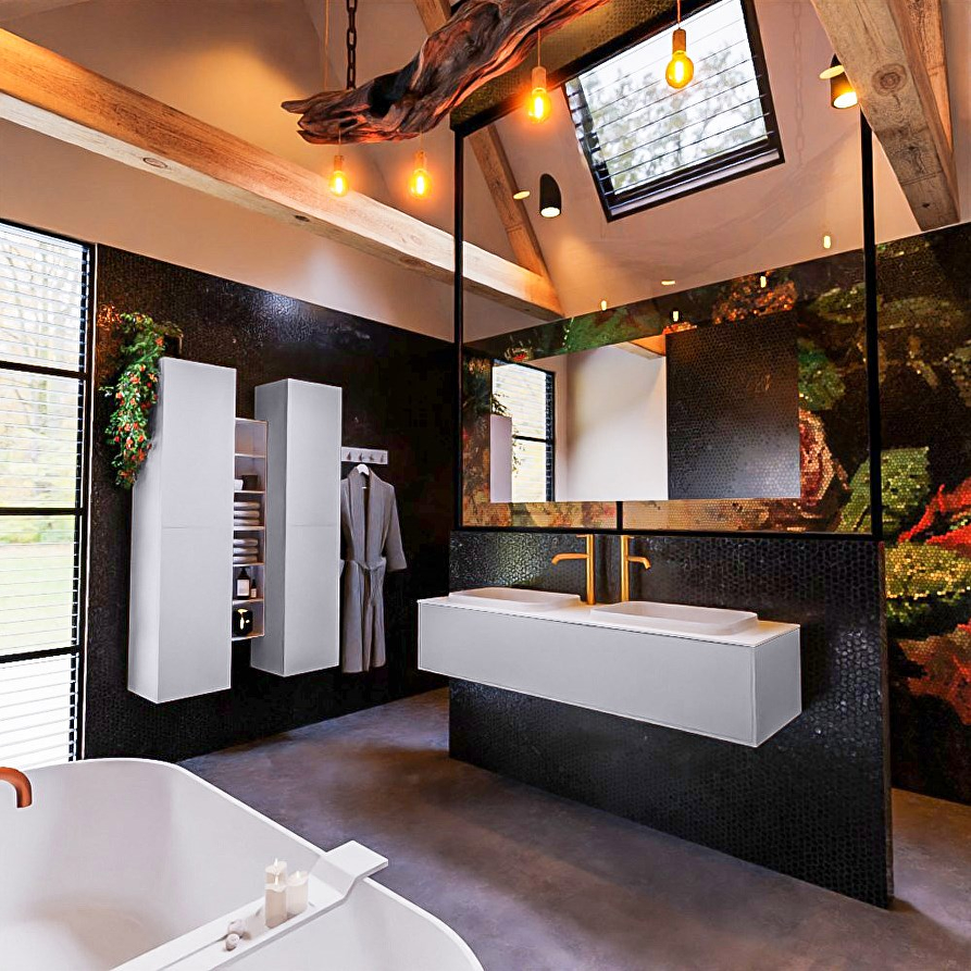Een badkamermeubel is geschikt voor vochtige ruimtes, maar het is belangrijk dat er geen direct water of condens langs het meubel loopt.