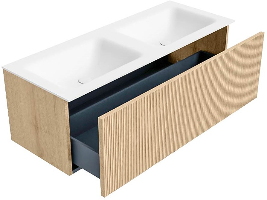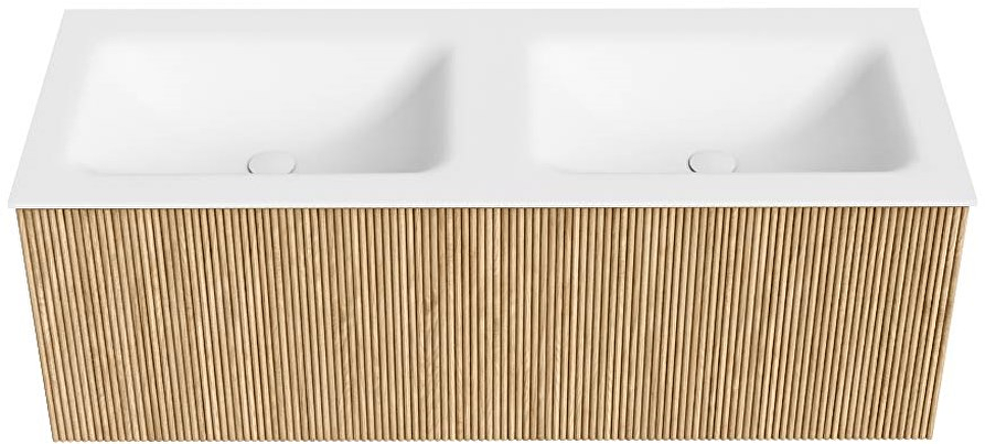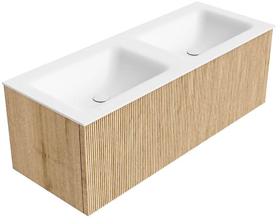 Breedte onderkast: ca. 120 cm Hoogte onderkast: ca. 40 cm Diepte onderkast: ca. 46 cm Kleur onderkast: Oak Materiaal fronten & zijkanten: Massief eiken & multiplex/fineer eiken Materiaal geraamte: Melamine Aantal lades: 1 Aantal deuren: 0 Type geleider: Push to open Breedte wastafel: 121 cm Hoogte wastafel: 0,9 cm Diepte wastafel: 47 cm Kleur wastafel: Talc Materiaal wastafel: Solid surface Positie wasbak: Dubbel Breedte spoelbak: 47 cm Aantal spoelbakken: 2 Aantal kraangaten: 2 Producent: Mondiaz Antibacterieel: Ja Maatwerk mogelijk: Ja Inclusief sifon: Nee Deze badmeubelset is mooi te combineren met: