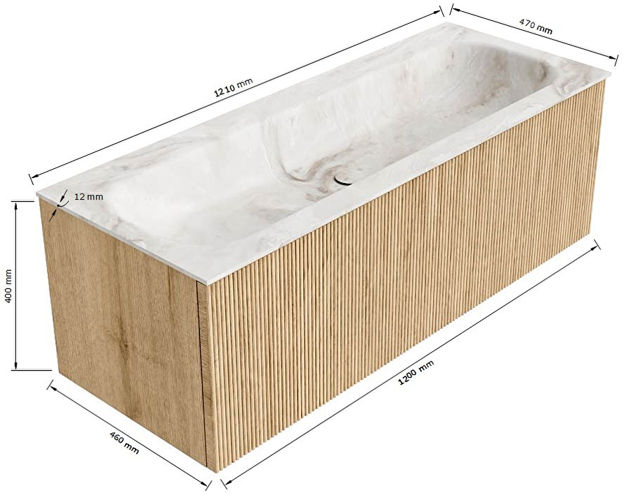 - Hoogte wastafel: 1,2 cm