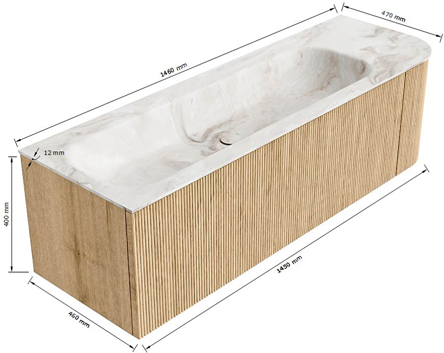 Personaliseer jouw KURVE met verschillende opties: Van een strak design zonder rondingen tot beide afgeronde hoeken, precies zoals jij het wilt. Beschikbaar in diverse maten, van 50cm tot 200cm, als set of op maat gemaakt voor jouw badkamer. Maak een statement met hoogwaardige wastafels in 5 CORIAN Solid Surface marmerkleuren en effen tinten zoals Talc en Urban. De set heeft ook meerdere modellen wastafels, elk met een unieke uitstraling en hoogwaardige afwerking, en laat KURVE jouw perfecte badkamer tot leven brengen.