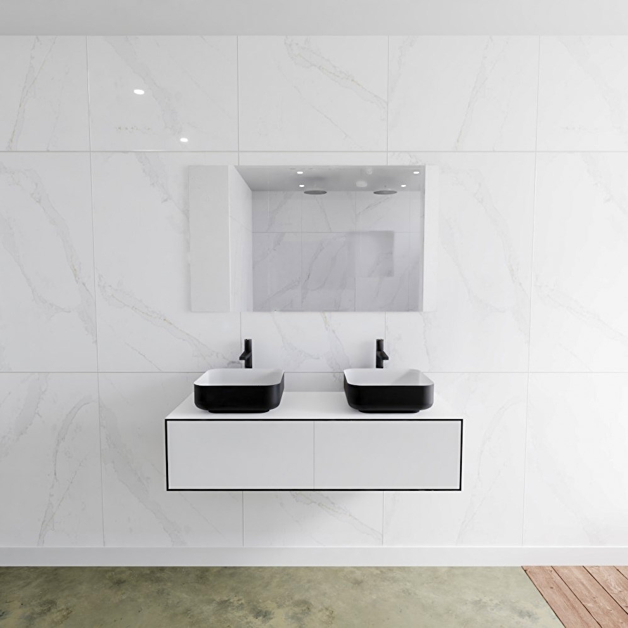 Ontdek de tijdloze elegantie van de serie LAGOM. Elk element, van de ombouw tot de wastafel en het voorpaneel, straalt klasse uit dankzij het gebruik van duurzaam solid surface materiaal. De collectie biedt veelzijdigheid met de keuze tussen een strakke inbouwwastafel of een eigentijds ontworpen topblad met waskom. Wij hebben voor jouw gemak meer dan 400 van de populairste combinaties toegevoegd. Alsof dat nog niet genoeg is, kun je zelf bij de badkameronderkast meer dan 65 duizend combinaties maken. De populaire meubels zijn samengesteld uit: kleur, afmeting, positie spoelbak, wel of geen kraangat. Je kunt uit iedere variatie kiezen door eenvoudig de filters te gebruiken, variërend van een badmeubel van 60 cm tot aan 200 cm. Nergens anders dan bij MONDIAZ vind je zo'n uitgebreide collectie badkamermeubelen.