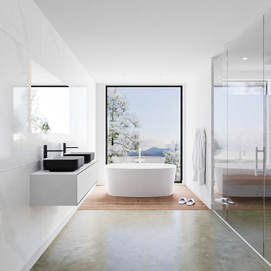 Solid surface vrijstaande baden Ruimtebesparende sifon Solid surface nissen Solid surface accessoires Technische specificaties: