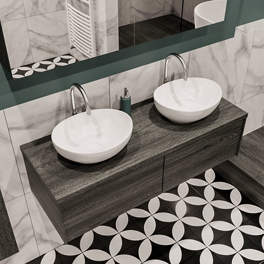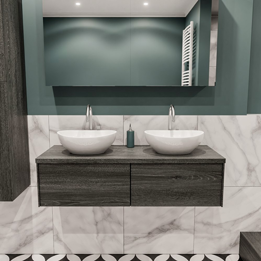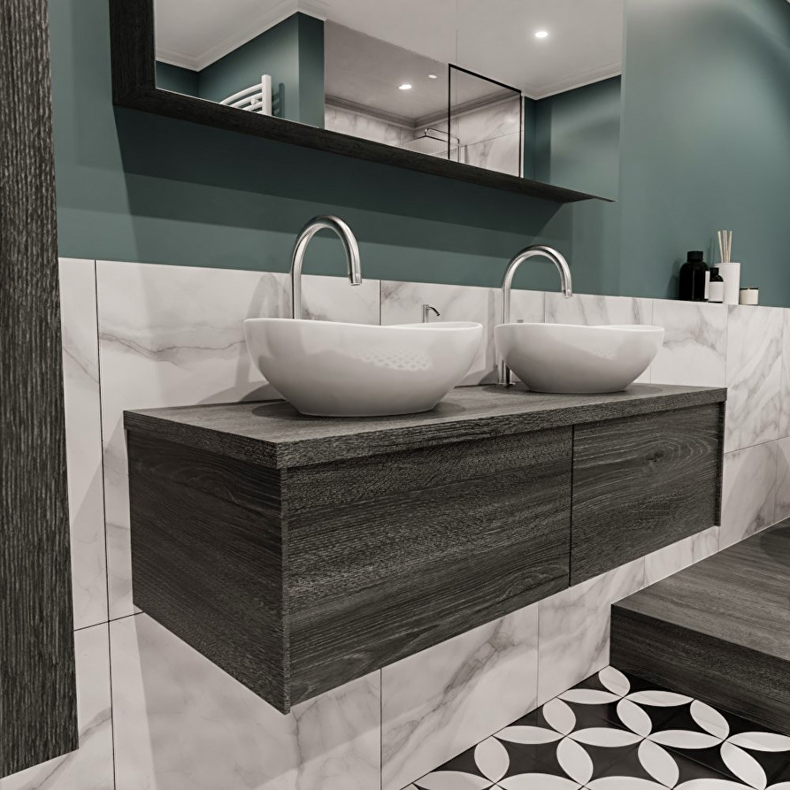 De LUSH meubelset is verkrijgbaar in vier prachtige melamine kleuren, die een warme en natuurlijke uitstraling toevoegen aan je badkamer. In de LUSH-serie heb je de keuze tussen 1 of 2 lades en kun je kiezen tussen een wastafel of waskom. Daarnaast is het mogelijk om te kiezen voor wel of geen kraangat en de positie van de wastafel of waskom. Deze serie biedt daarmee veelzijdige opties om het badmeubel aan te passen aan jouw specifieke behoeften en smaak.