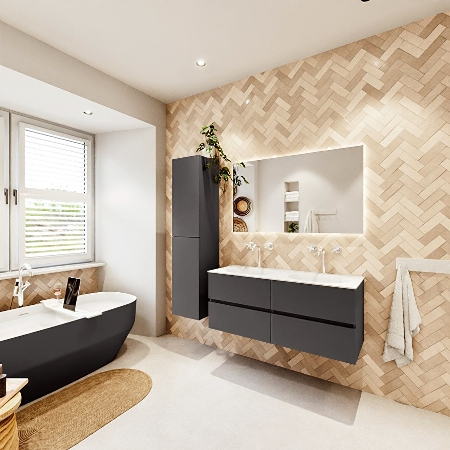 De VICA badmeubel set is beschikbaar in maten van 60 cm tot 200 cm, oplopend per 10 cm, en biedt maar liefst 25 verschillende kleuren, waaronder de exclusieve kleuren Oro en Plata. Als je maat of kleur er niet bij zit, zijn maatwerkopties altijd beschikbaar. Combineer de meubels gemakkelijk met bijpassende kolomkasten, baden, nissen en accessoires om jouw badkamer helemaal af te maken.