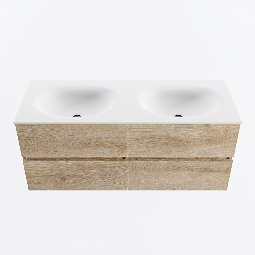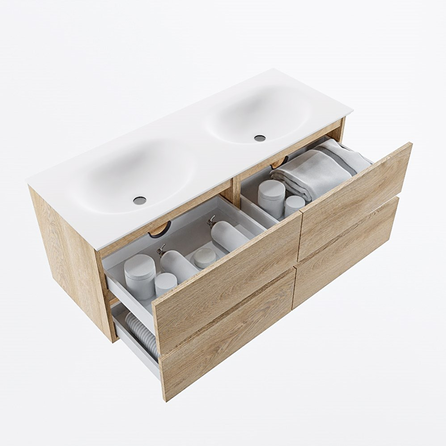 Breedte onderkast: ca. 120 cm Hoogte onderkast: ca. 50 cm Diepte onderkast: ca. 45 cm Kleur onderkast: Washed Oak Materiaal onderkast: Melamine Aantal lades: 4 (met softclose) Wastafel breedte: 121 cm Wastafel hoogte: 0,9 cm Wastafel diepte: 46 cm Kleur wastafel: Talc Materiaal wastafel: Solid Surface Positie wasbak: Dubbel Breedte spoelbak: 47 cm Aantal spoelbakken: 2 Aantal kraangaten: 2 Producent: Mondiaz Antibacterieel: Ja Maatwerk: Ja Inclusief sifon: Nee Combineer deze set prachtig met: