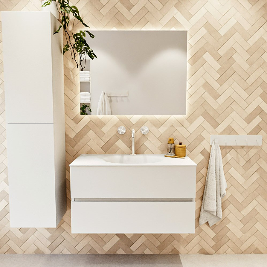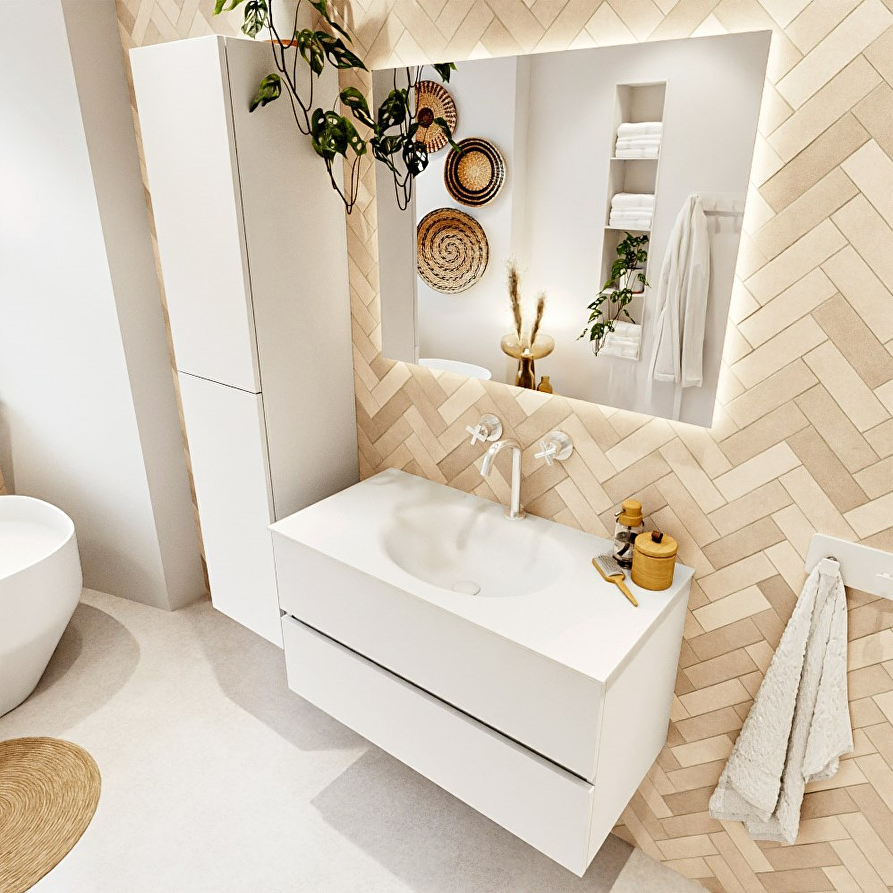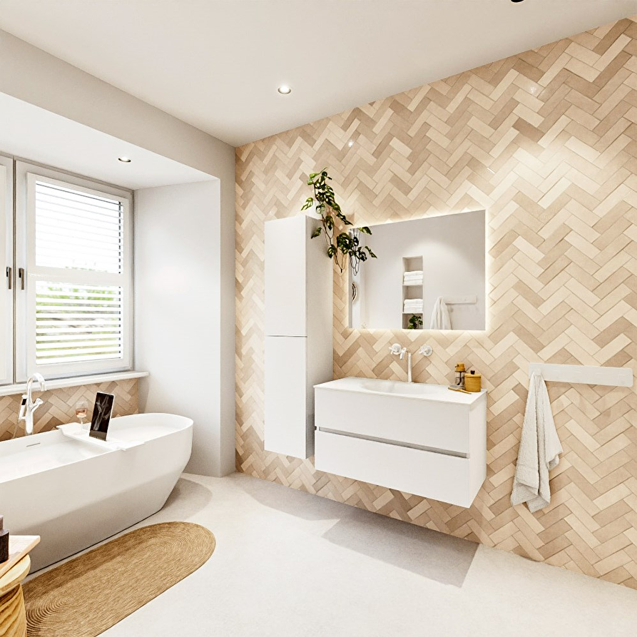 Daarnaast kun je kiezen uit drie modellen wastafels: de CLOUD en MOON van Solid Surface, en de DENIA keramische wastafel. Elk model biedt diverse opties voor de plaatsing van de wasbak, evenals varianten met of zonder kraangaten. Met maatwerkopties creëer je een badkamer die volledig aan jouw wensen voldoet, en je kunt de VICA set eenvoudig combineren met bijpassende kolomkasten, baden en accessoires.