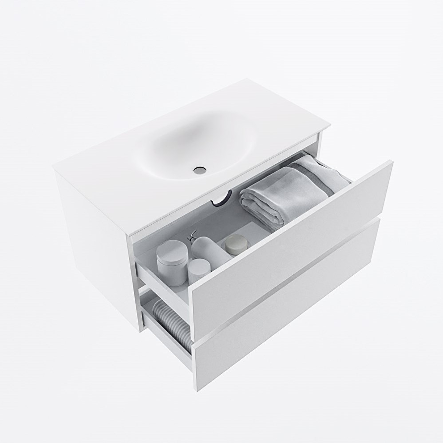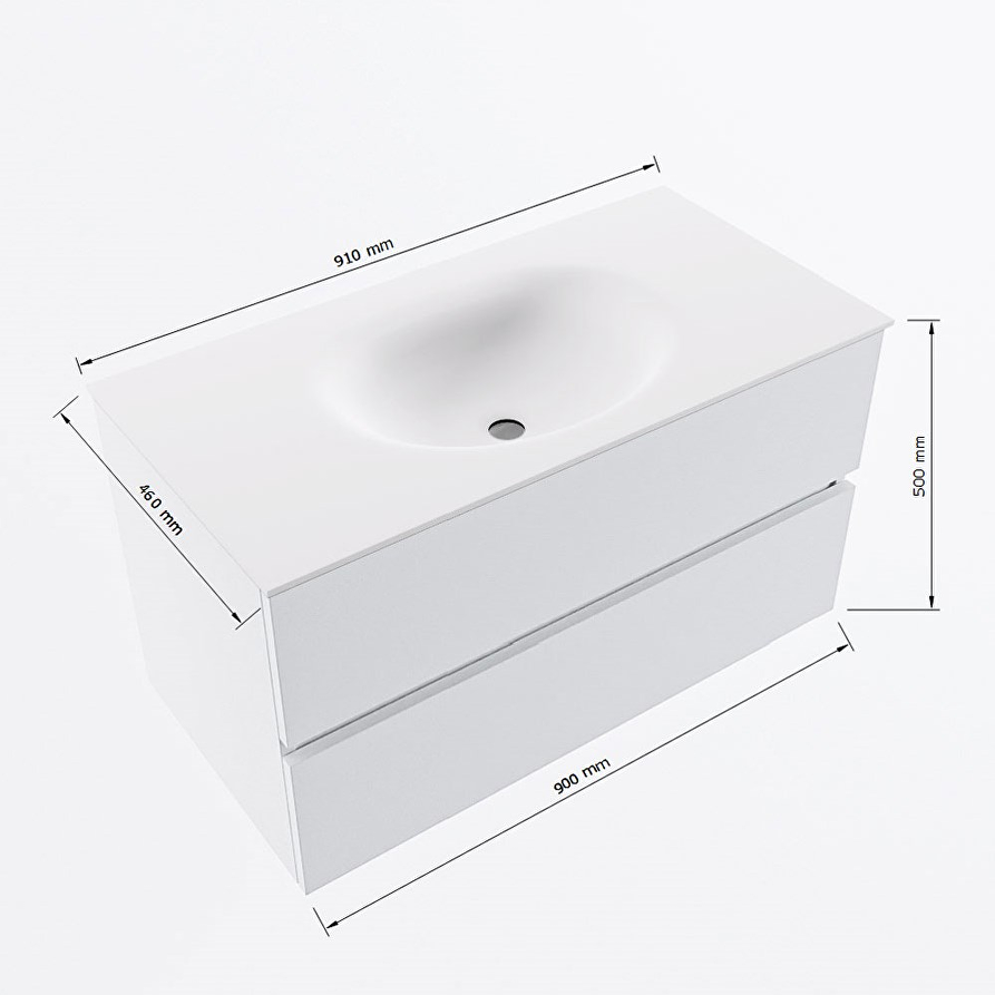 Breedte onderkast: ca. 90 cm Hoogte onderkast: ca. 50 cm Diepte onderkast: ca. 45 cm Kleur onderkast: Talc Materiaal onderkast: MDF Aantal lades: 2 Type geleider: Softclose Breedte wastafel: 91 cm Hoogte wastafel: 0,9 cm Diepte wastafel: 46 cm Kleur wastafel: Talc Materiaal wastafel: Solid surface Positie wasbak: Midden Breedte spoelbak: 47 cm Aantal spoelbakken: 1 Aantal kraangaten: 1 Producent: Mondiaz Antibacterieel: Ja Maatwerk mogelijk: Ja Inclusief sifon: Nee Deze badmeubelset is mooi te combineren met: