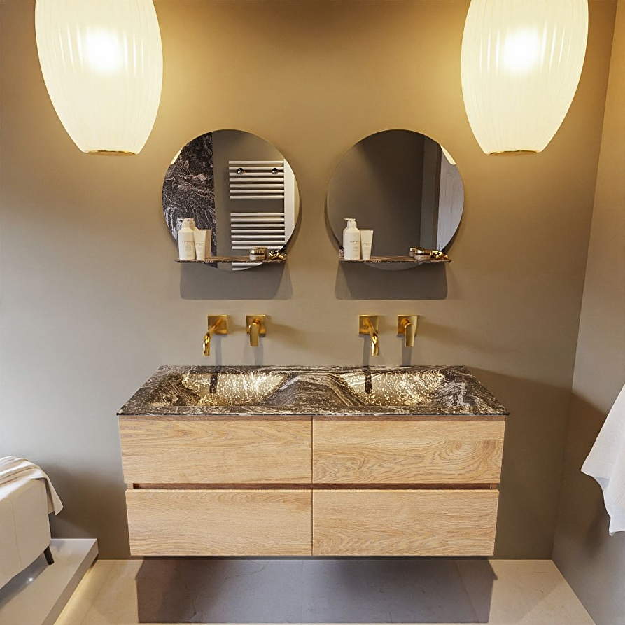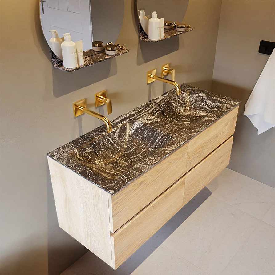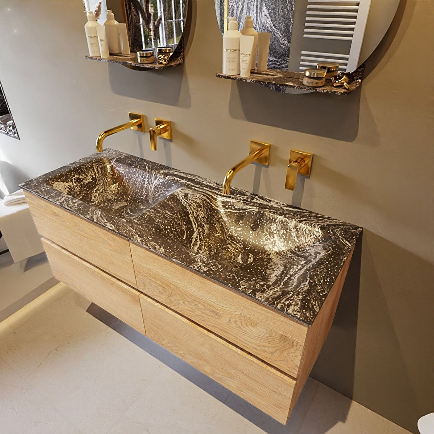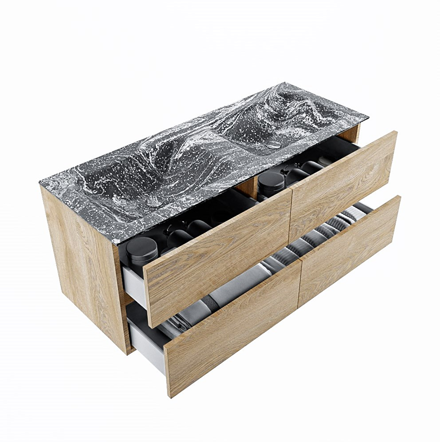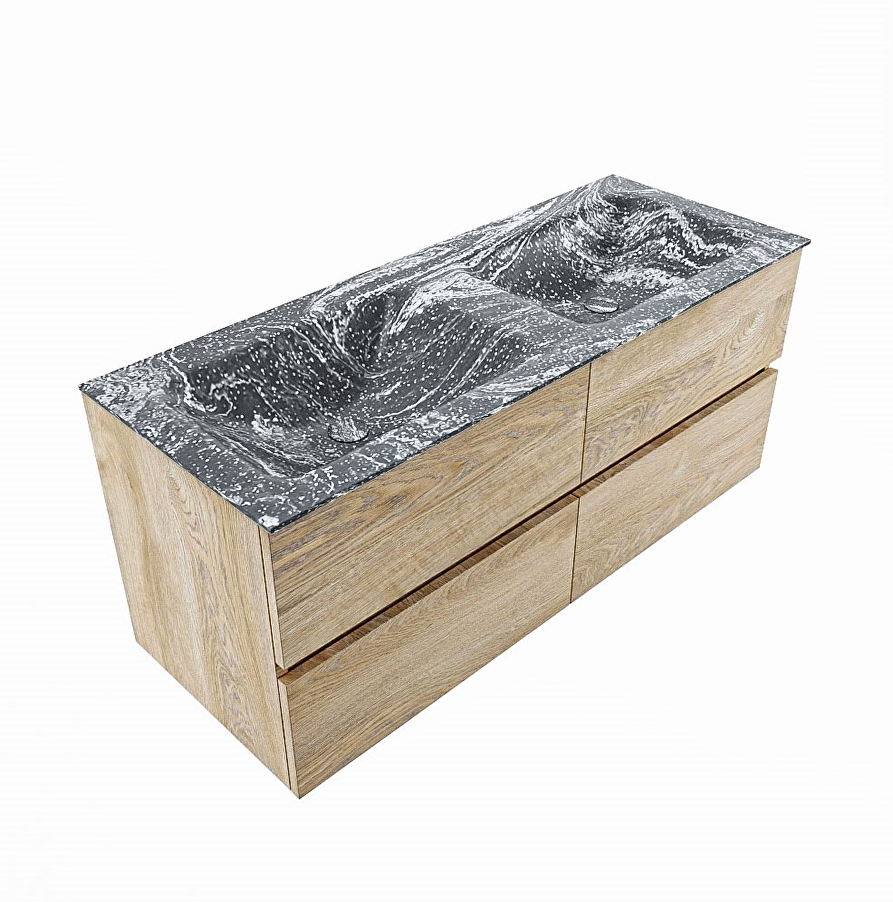 Breedte onderkast: ca. 120 cm Hoogte onderkast: ca. 50 cm Diepte onderkast: ca. 45 cm Kleur onderkast: Washed Oak Materiaal onderkast: Melamine Aantal lades: 4 Type geleider: Softclose Breedte wastafel: 121 cm Hoogte wastafel: 1,2 cm Diepte wastafel: 46 cm Kleur wastafel: Lava Materiaal wastafel: Solid Surface Positie wasbak: Dubbel Breedte spoelbak: 47 cm Aantal spoelbakken: 2 Aantal kraangaten: 0 Producent: Mondiaz Antibacterieel: Ja Maatwerk mogelijk: Ja Inclusief sifon/plug: Nee Deze badmeubelset is mooi te combineren met:
