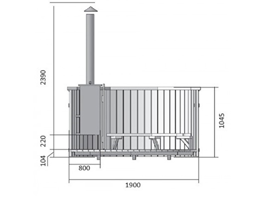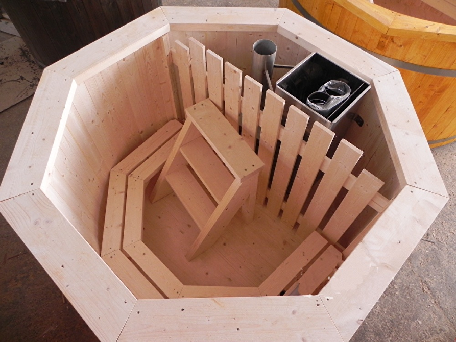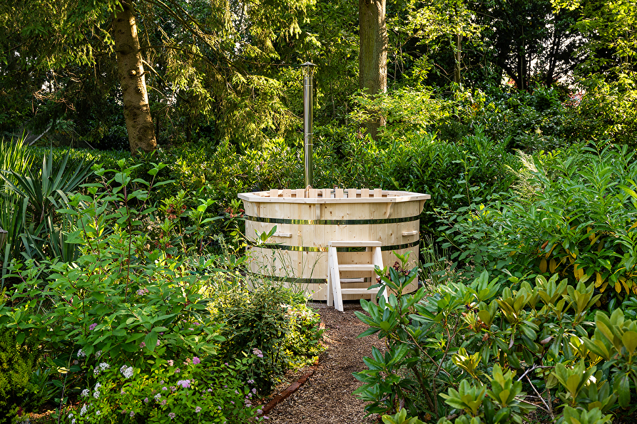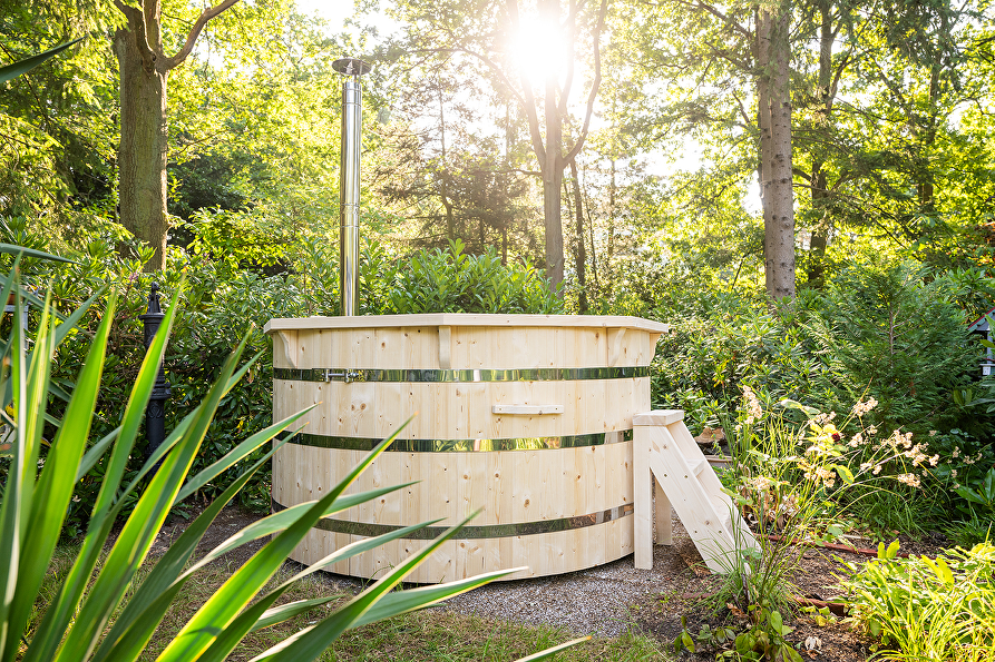 • Voorzien van: RVS houtkachel 12/14 KW met schoorsteen – Trapje - Spanbanden van roestvrij staal – Houten bankjes – Een houten hekje om het bankje veilig af te scheiden van de warme kachel - Een waterafvoerklep om de hot tub gemakkelijk leeg te laten lopen. Houten cover om de hot tub af te dekken wanneer deze niet in gebruik is.