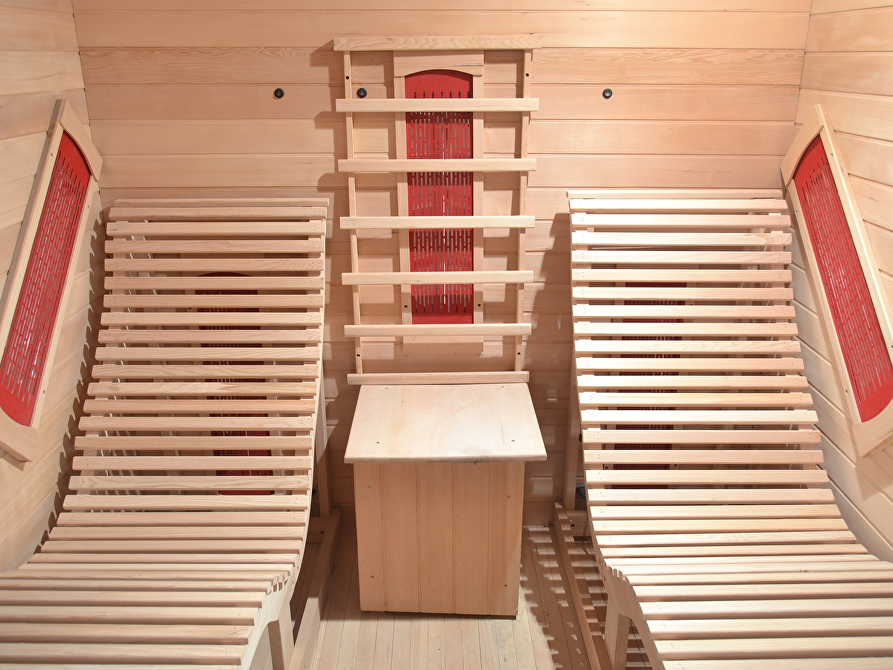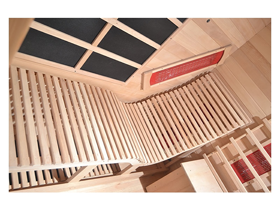 • Verwarming: Infraroodverwarming (3400w) verwarmd Giethars platen die evenredig warmte afgeven binnen de sauna
