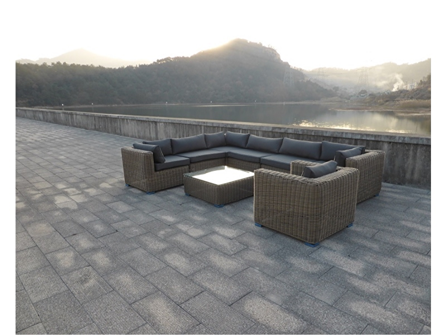 Ontspan in luxe met de Reverie loungeset. Deze 8-delige set combineert hoogwaardig bruin wicker met grijze kussens voor een stijlvolle uitstraling. Het gepoedercoate aluminium frame zorgt voor duurzaamheid, terwijl de waterafstotende kussens en weerbestendige vlechtwerk uw comfort garanderen. Creëer uw eigen oase van ontspanning met deze elegante loungeset.