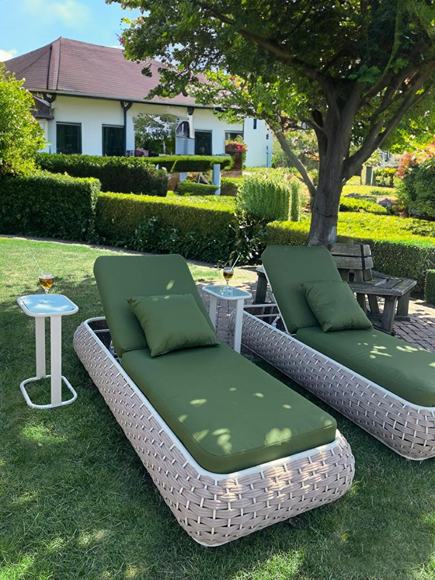 Droom weg in luxe met ons RivieraDream ligbed met bijzettafel! Deze 2-delige set heeft een prachtig bruin wicker design en olijfgroene kussens. Het gepoedercoate aluminium frame zorgt voor een langere levensduur en het weerbestendige vlechtwerk maakt dit ligbed perfect voor buitengebruik. Geniet van een ontspannen loungen in stijl. Haal vandaag nog deze hoogwaardige set in huis.