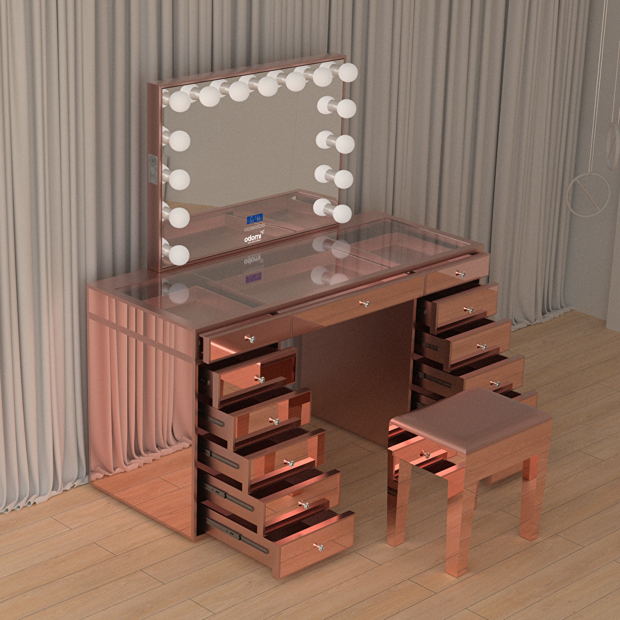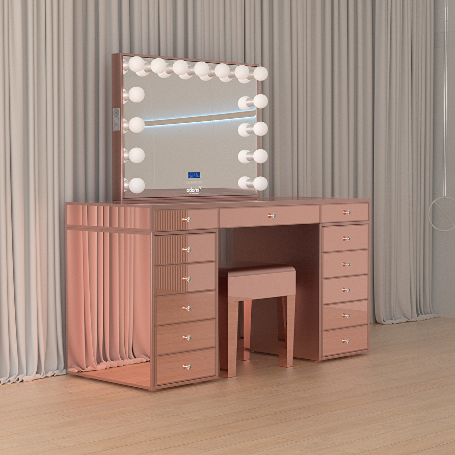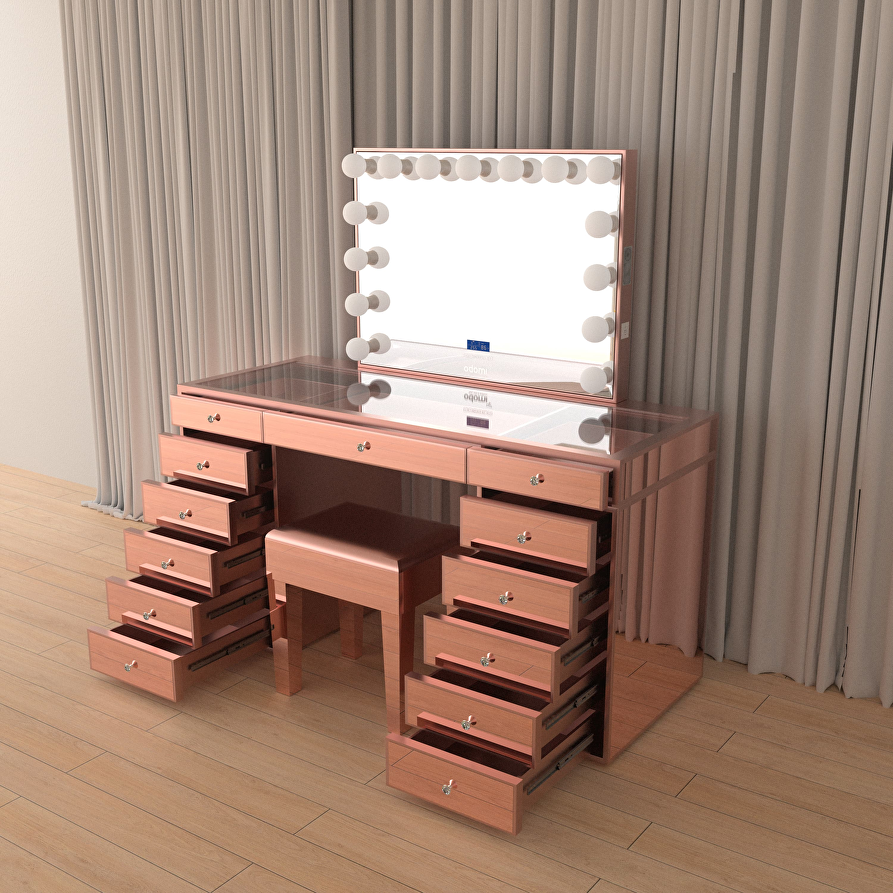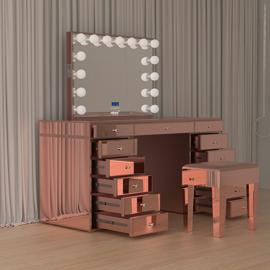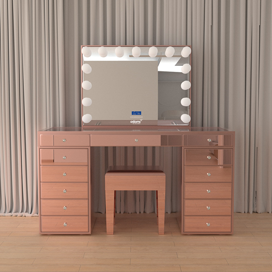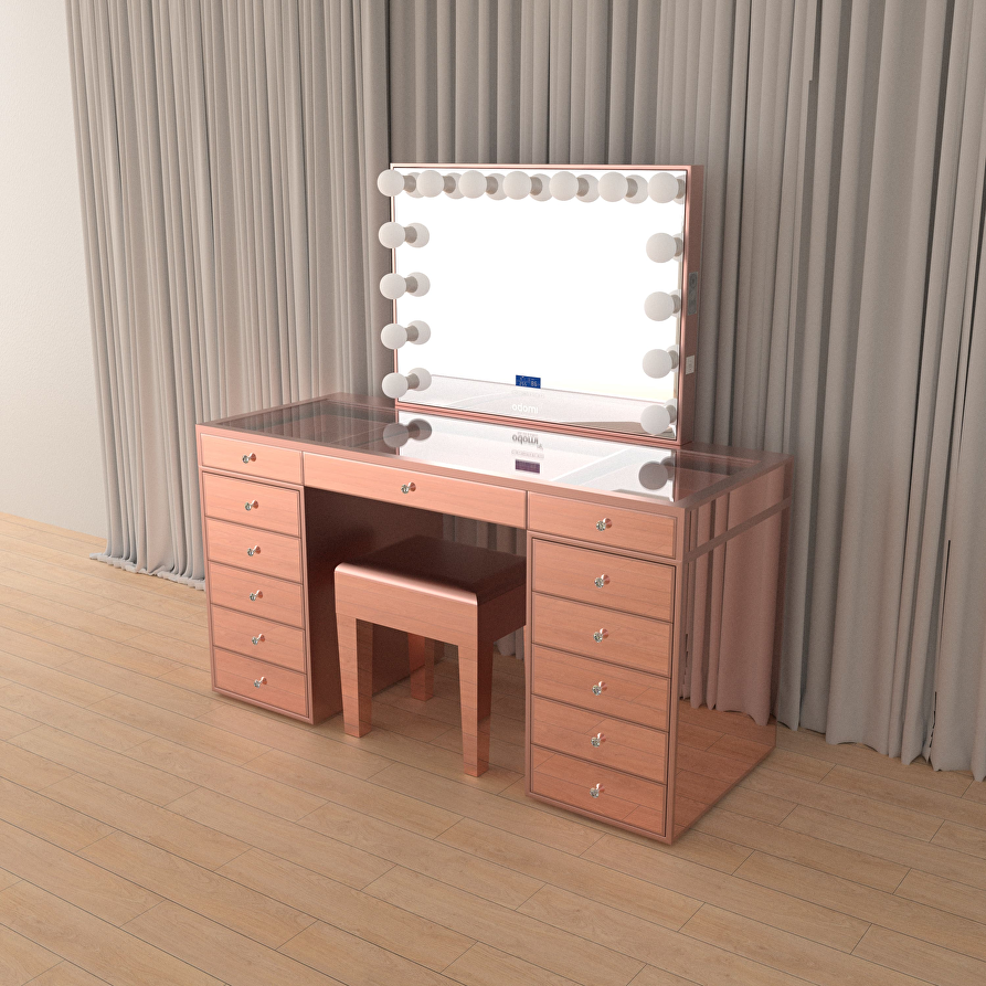 Beeld je in dat je de ster bent in een Hollywood-film, want dat gevoel geeft deze luxueuze kaptafel. Zelfs make-upartiesten en schoonheidsspecialisten maken graag gebruik van deze kaptafel. Wij zijn daarom trots dat we één van de weinige aanbieders in Nederland van deze exclusieve kaptafel zijn.