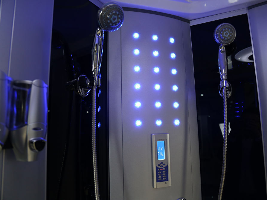 Ontsnap naar luxe en ontspanning met de Annara halfronde stoomcabine met massagebad. Zwarte cabine, wit bad. Veiligheidsglas, top- en zijverlichting, handdouche, topdouche, acupunctuur rugmassage. Ontdek ons topkwaliteitsmerk Annara. Verwen jezelf met deze hoogwaardige stoomcabine!