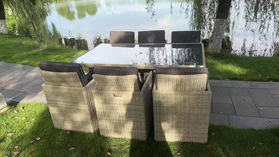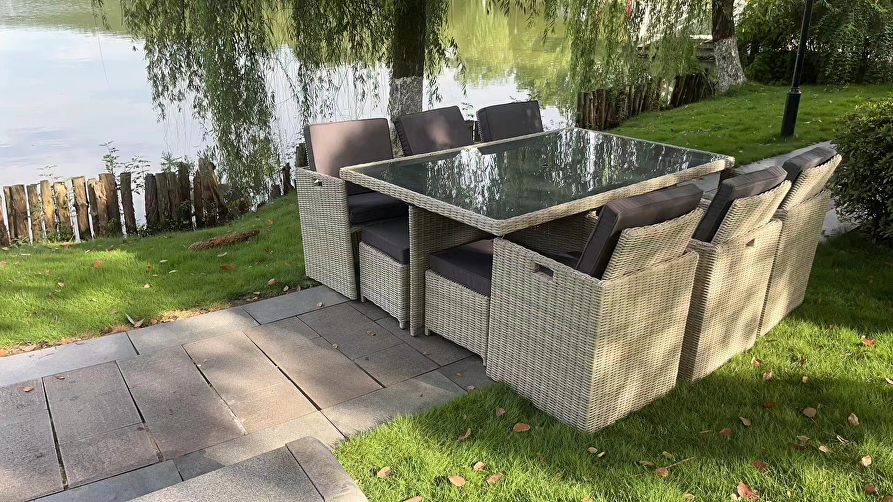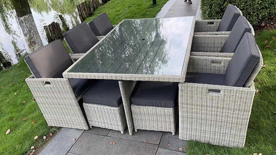 Ontdek de pure luxe van de Sophisto diningset. Met een gepoedercoat aluminium frame en weerbestendig vlechtwerk is deze 11-delige lichtgrijze wicker set een garantie voor langdurig plezier. Geniet in stijl van comfortabele momenten met familie en vrienden.