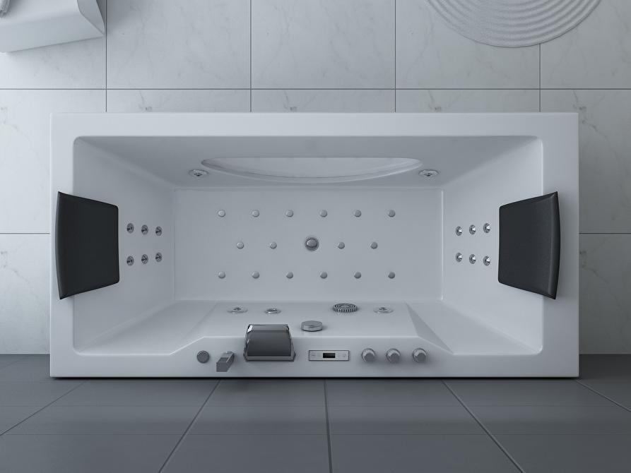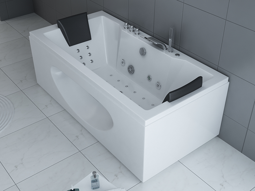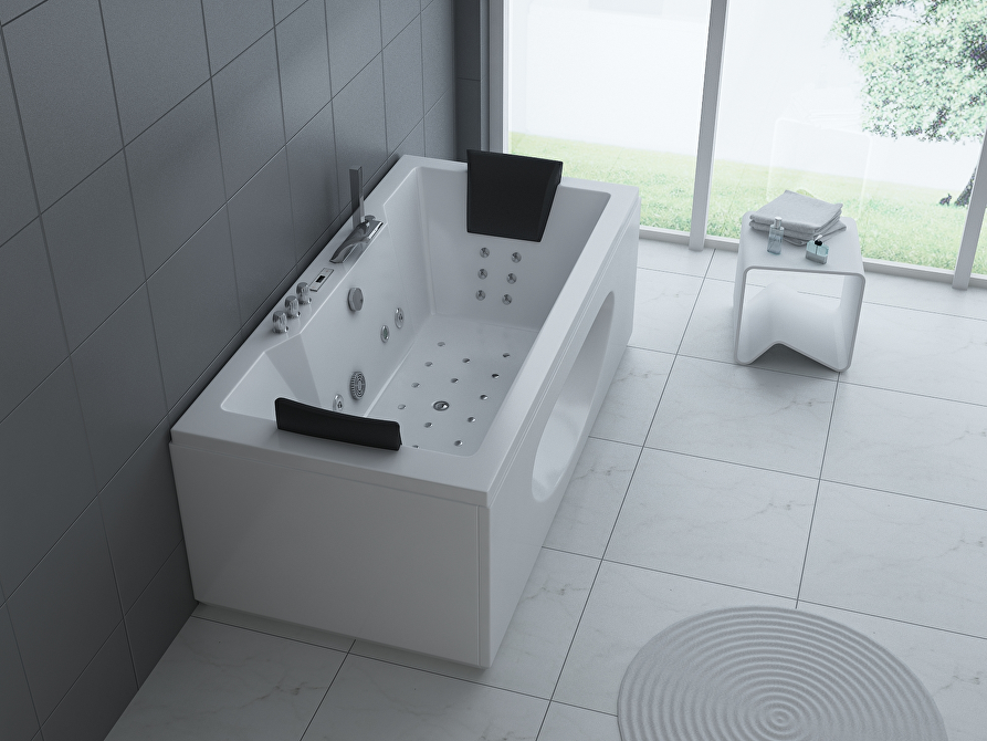 Geniet van het gemak van een thermostatische kraan, handdouche, watercirculatie, en ozone generator voor extra hygiëne van het badwater. De twee comfortabele hoofdkussens maken het relaxmoment compleet.