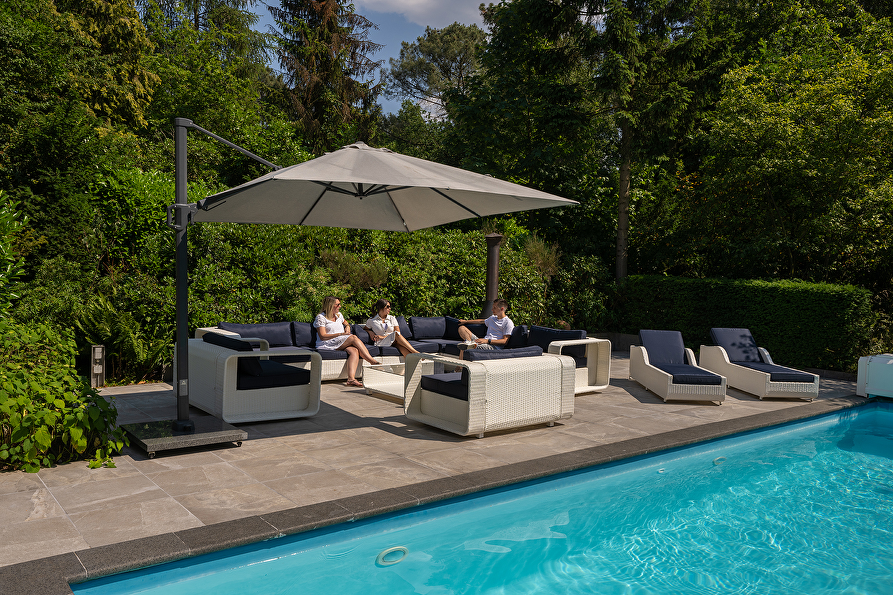 Ontspan in stijl met de luxe Zeufes loungeset. Inclusief 11-delige set, met wit wicker design en donkerblauwe kussens. Hoogwaardige kwaliteit en weerbestendig. Creëer jouw perfecte loungesfeer met dit unieke merk.